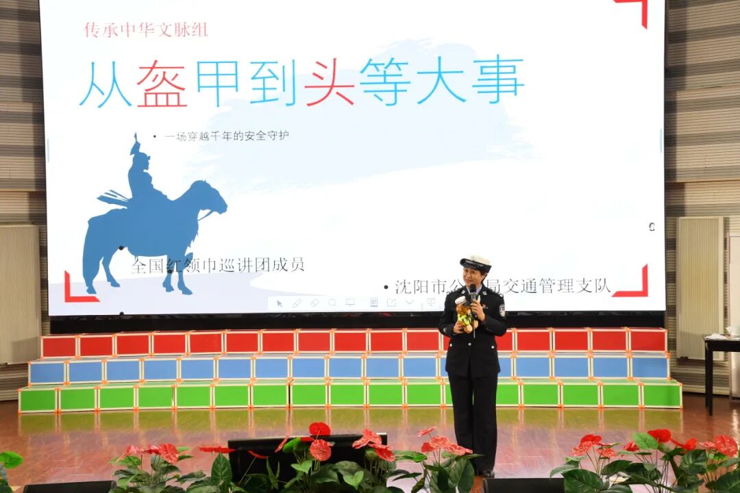 全国红领巾巡讲团成员、辽宁省沈阳市公安局交通管理支队和平大队、一级警长 张颖,分享《“从‘盔’甲到‘头’等大事” 一场穿越千年的安全守护》