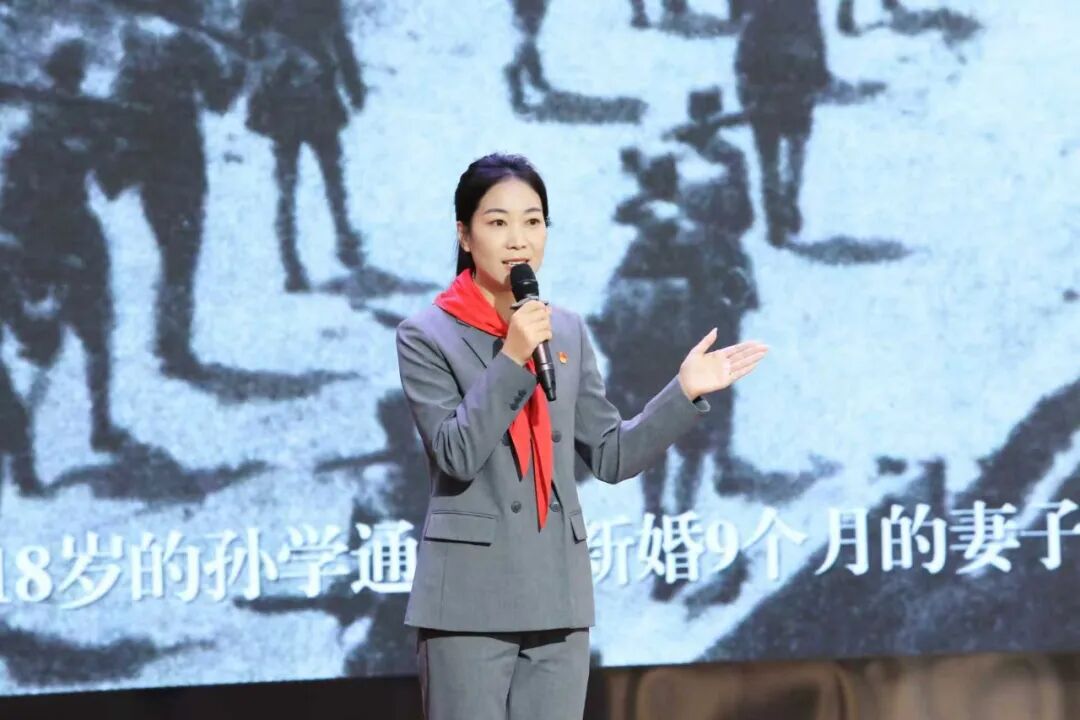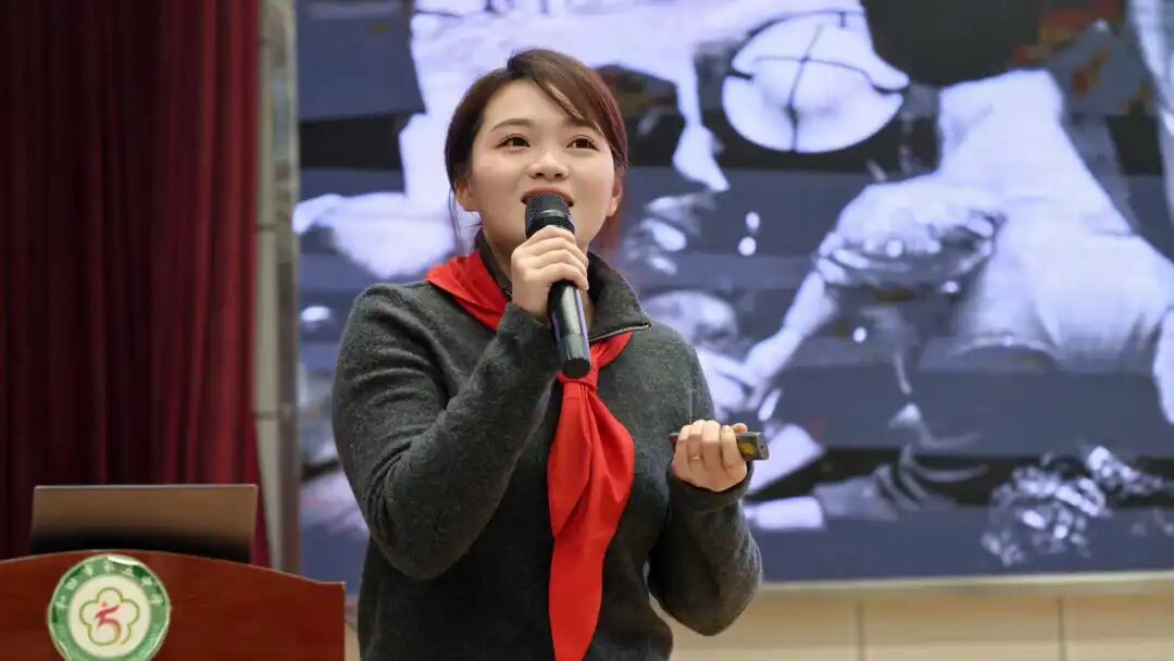 全国红领巾巡讲团成员、天津市河东区实验小学少先队大队辅导员 窦悦辉,分享《闪耀在黄土地上的青春之光》