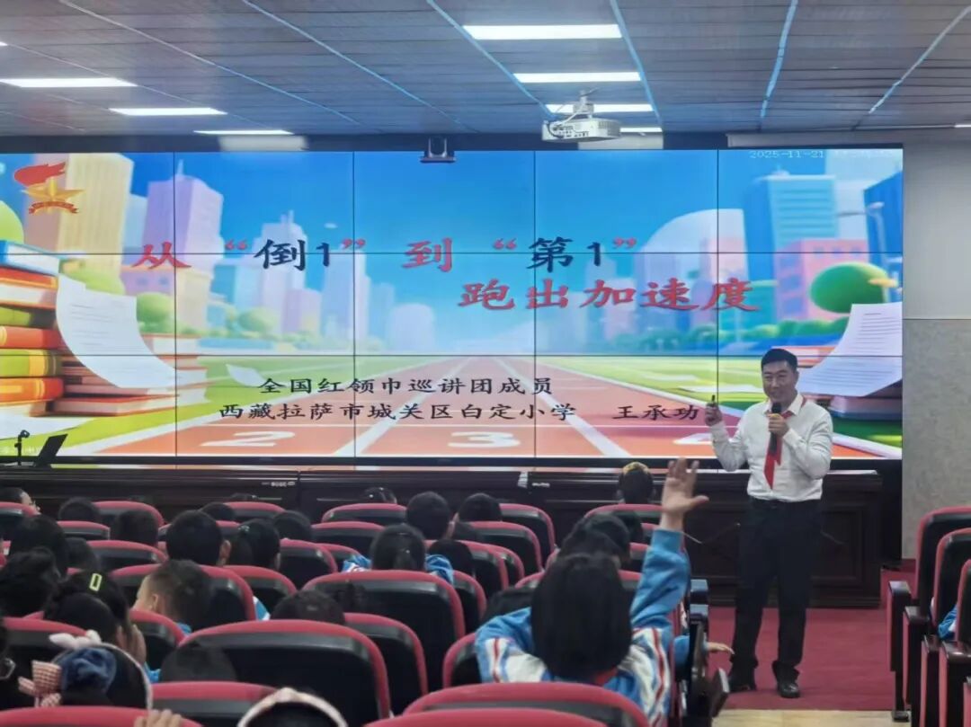 全国红领巾巡讲团成员、西藏自治区拉萨市城关区白定小学校长 王承功,分享《从“倒1”到“第1”跑出加速度》