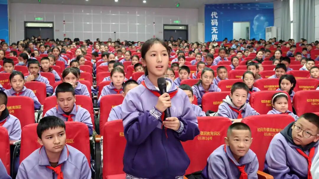 全国红领巾巡讲团成员、新疆克孜勒苏柯尔克孜自治州阿图什市克州第三小学少先队中队辅导员 翟方娜,分享《行走的“中国石”》