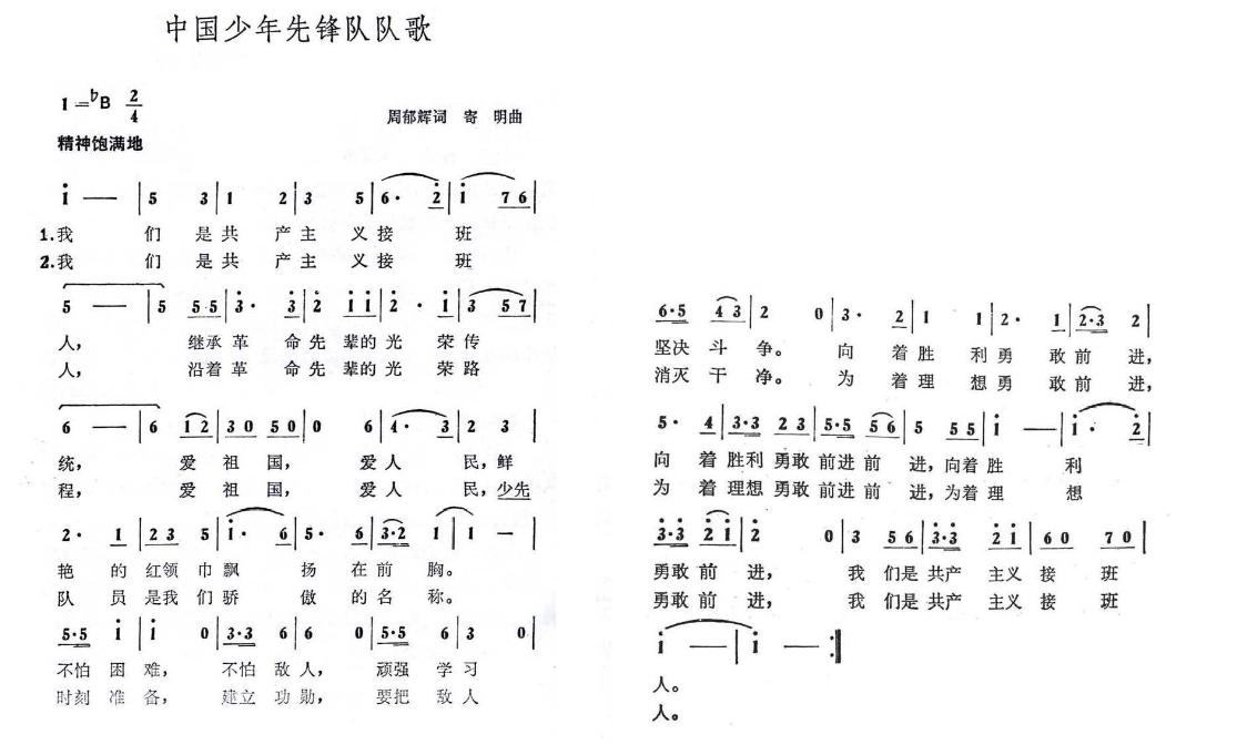 队歌:《我们是共产主义接班人》简谱(点击下载)